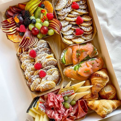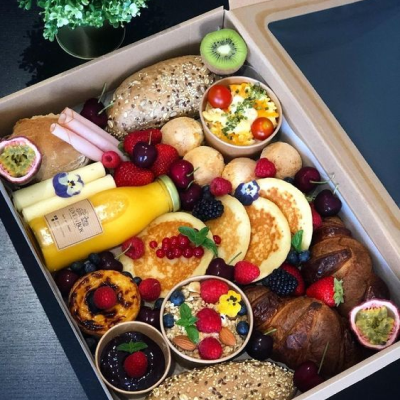 8 pancakes, 8 waffles, 6 crispy chicken, 6 sausages, scrambled eggs, apples fried yam, pepper sauce and syrup (feeds 6)